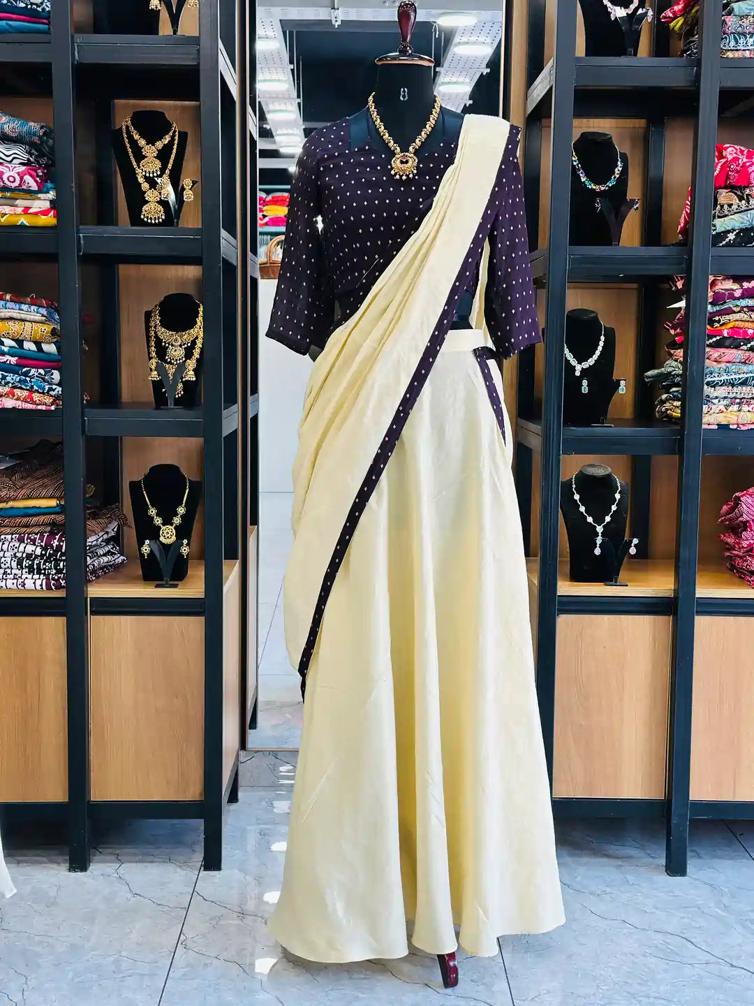 Traditional Dhavani Set (Dark Purple)